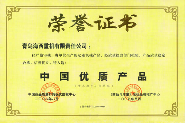 優(yōu)質產品榮譽證書