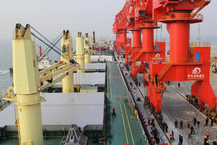 贛榆港區(qū)擁有各類新型碼頭裝卸設(shè)備130余套,其中MQ4043門座起重機(jī)、MQ2537門座起重機(jī)等14臺(tái)碼頭前沿裝卸關(guān)重設(shè)備由青島海西重機(jī)設(shè)計(jì)、制造,它們的投產(chǎn)使用,進(jìn)一步提高了港口的作業(yè)能力,助力贛榆港區(qū)吞吐量成功突破1000萬噸。