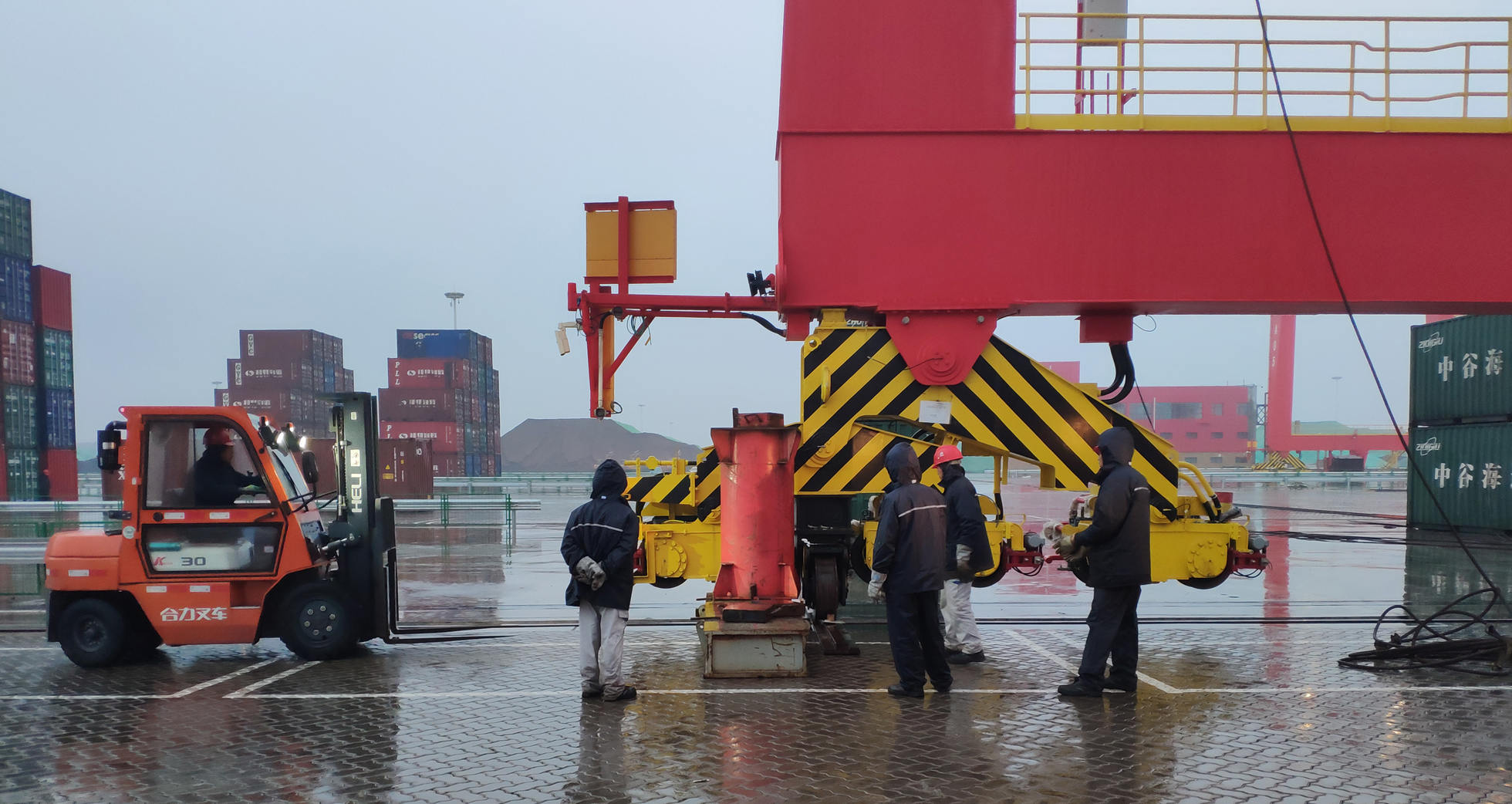 拋開短暫的勝利喜悅,繼續(xù)披星戴月往前趕。項(xiàng)目組深知還有6臺(tái)設(shè)備沒有到達(dá),還有幾場(chǎng)硬仗要打,接下來要在天氣變化無(wú)常的冬天完成運(yùn)輸任務(wù)。當(dāng)計(jì)劃制定出來,所有人都認(rèn)為,計(jì)劃只有理論上的可能性,然而在執(zhí)行過程中每一次裝船卸船都在刷新著海西記錄。為了搶船期,第二批次裝船前需要清理船上的大量工裝結(jié)構(gòu)件,海西人沒有退縮,有溝過溝,有坎過坎,項(xiàng)目團(tuán)隊(duì)硬是用一天一夜的時(shí)間騰出了裝船的位置,并在第二天晚上完成了2臺(tái)設(shè)備的吊裝?,F(xiàn)場(chǎng)卸船過程中天公不作美,現(xiàn)場(chǎng)下起了雨,但項(xiàng)目組沒有一個(gè)人退縮,即使衣服全部濕透,鞋子灌滿了雨水,大家依然堅(jiān)持,每一個(gè)潮水卸一臺(tái)機(jī),就這樣,用戶被海西人的干勁兒所打動(dòng)。