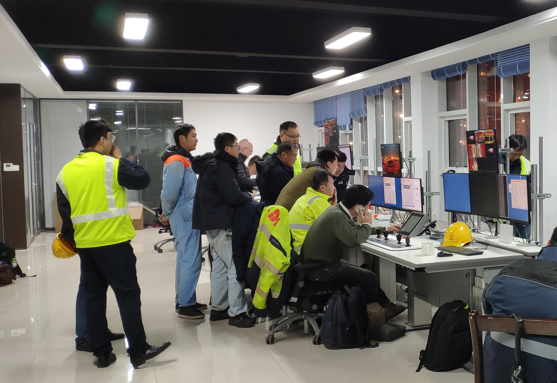 經(jīng)過11月份一個(gè)月的緊張努力,運(yùn)輸任務(wù)圓滿完成,藍(lán)圖成為了現(xiàn)實(shí)!現(xiàn)場(chǎng)調(diào)試階段,即使夜幕降臨,施工現(xiàn)場(chǎng)還是燈火通明,各個(gè)班組緊張有序地對(duì)當(dāng)天的工作收尾,遠(yuǎn)控中心調(diào)試工作有序進(jìn)行,不管多晚,技術(shù)人員都會(huì)對(duì)當(dāng)天工作進(jìn)行總結(jié),制定第二天的生產(chǎn)計(jì)劃。