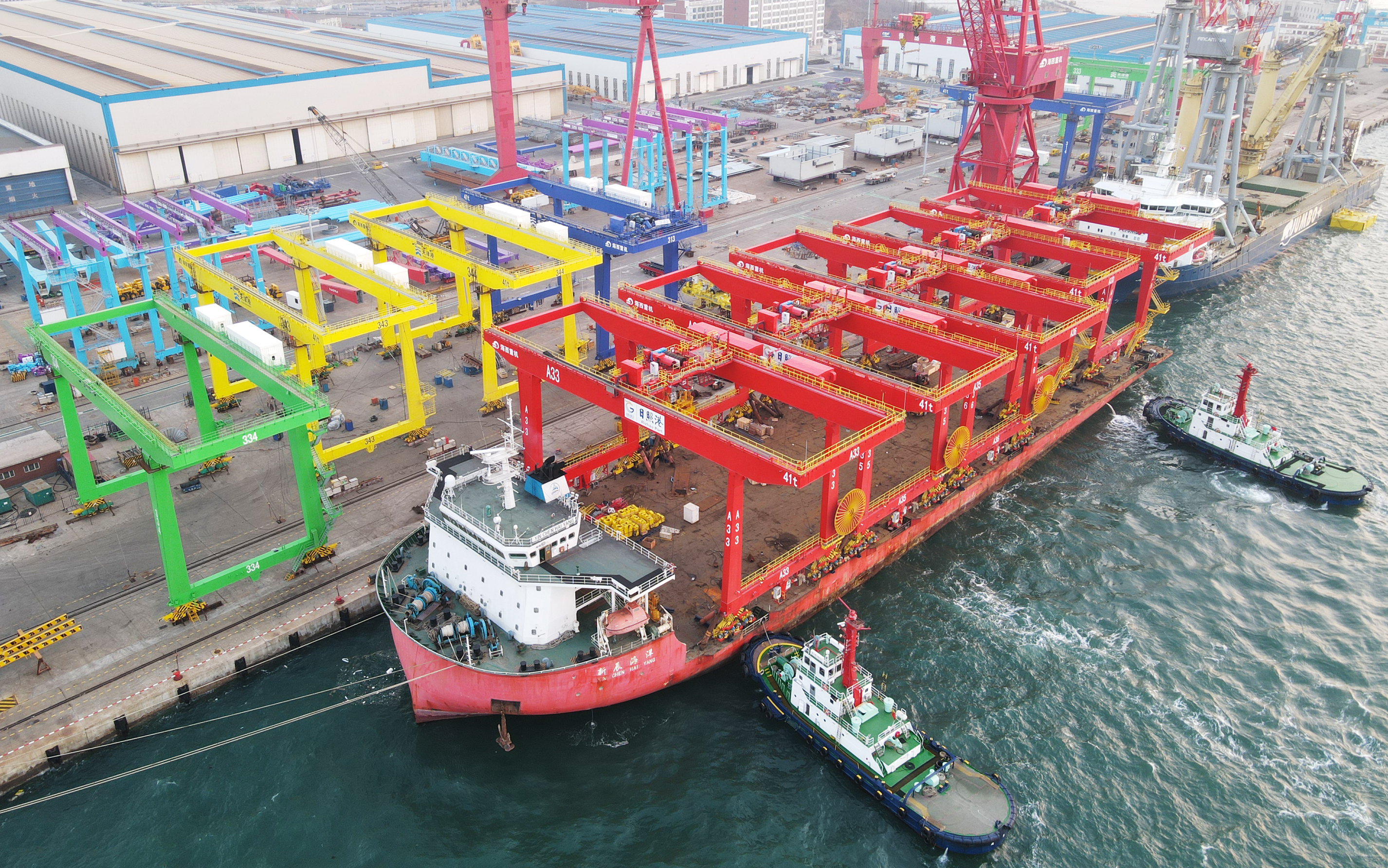 2月2日下午,中國船舶集團旗下武漢船機海西重機公司為日照港集裝箱自動化堆場三期項目打造的第四批5臺自動化軌道吊順利到港,至此該項目16臺設(shè)備全部完成廠內(nèi)制作。