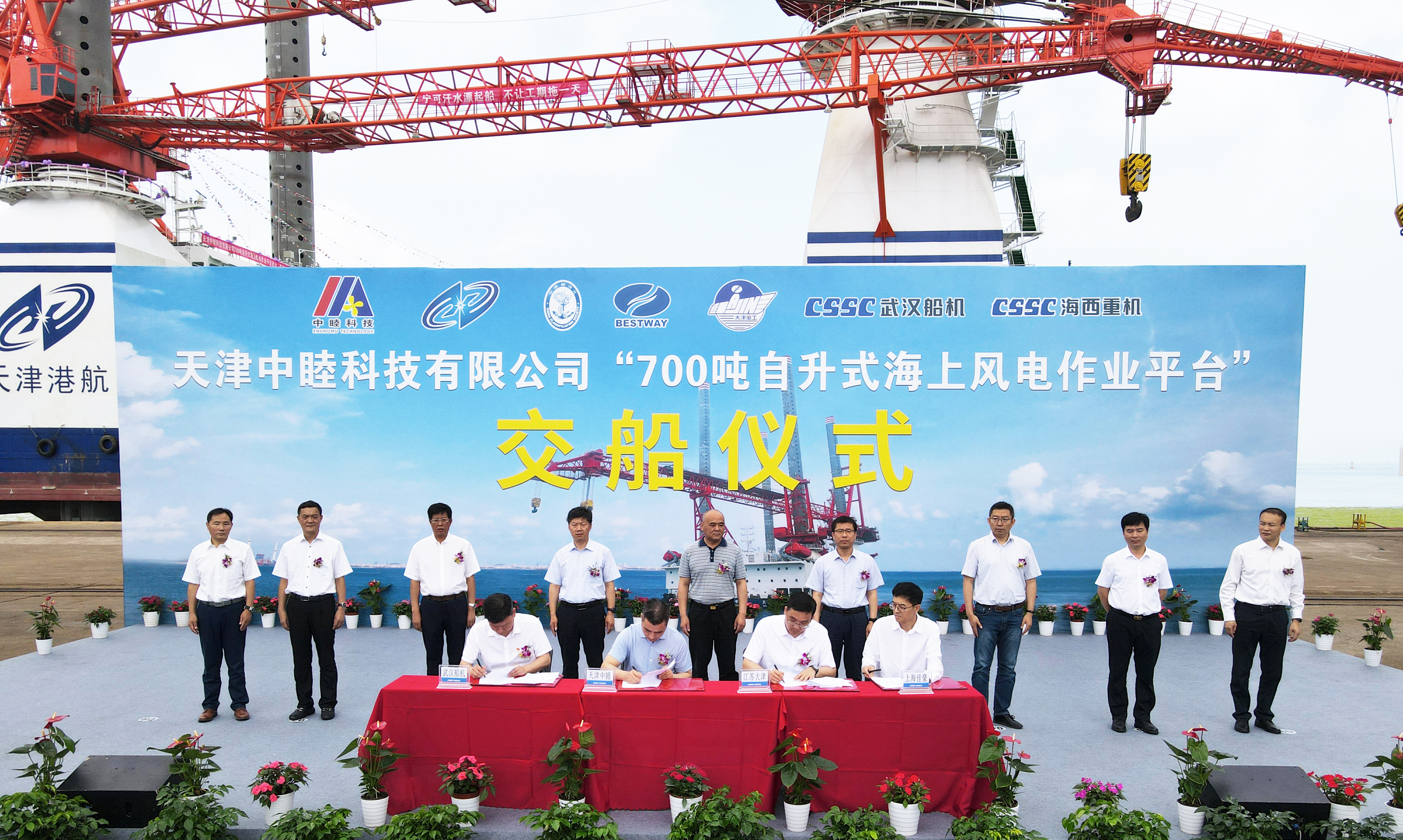 6月28日上午,天津中睦科技有限公司700T自升式海上風(fēng)電作業(yè)平臺——“港航平7”在中國船舶集團(tuán)旗下武漢船機海西重機順利交付。