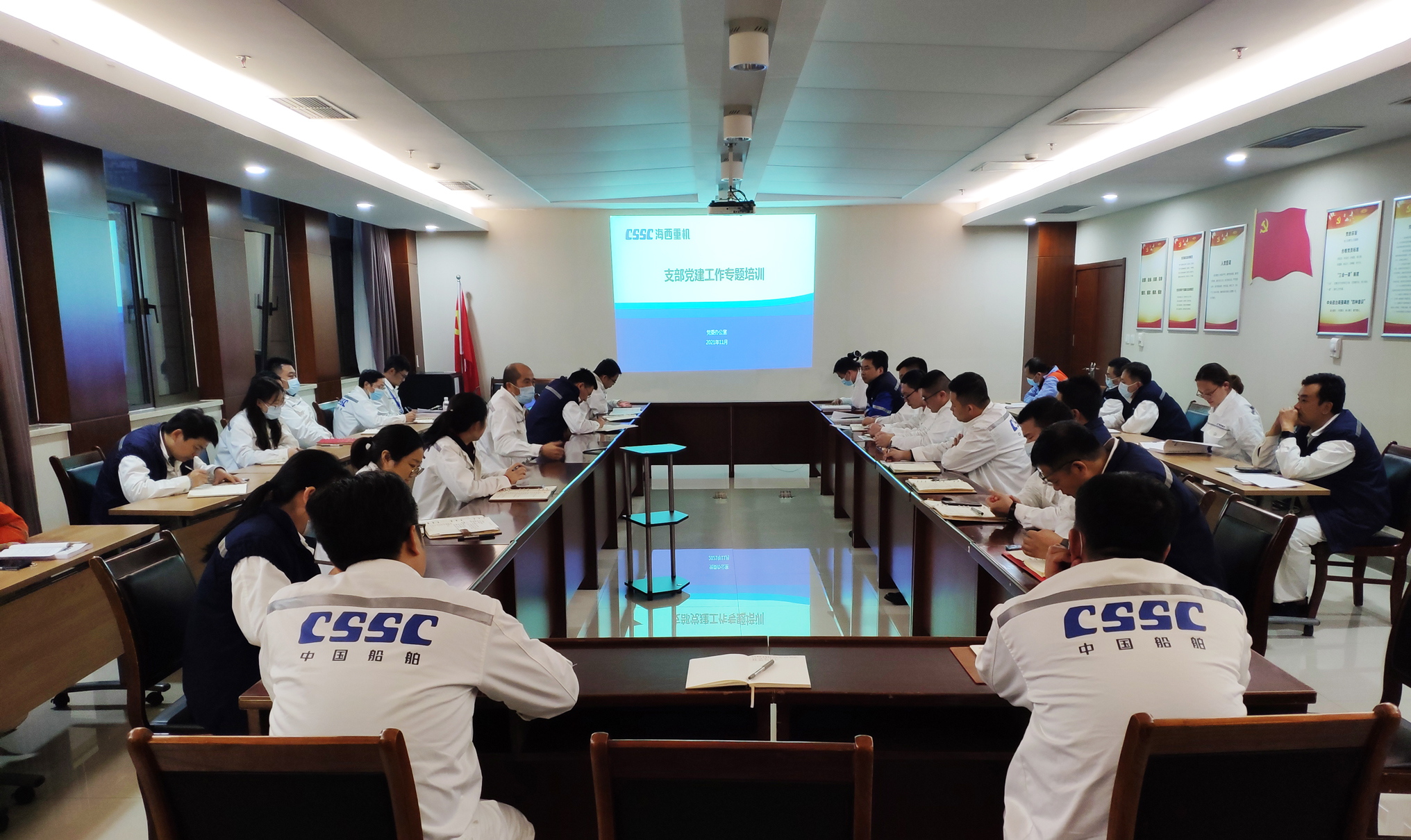 為深入貫徹落實(shí)“把加強(qiáng)學(xué)習(xí)作為第一需要”,根據(jù)一級(jí)培訓(xùn)計(jì)劃安排,11月3日,中國(guó)船舶集團(tuán)旗下武漢船機(jī)海西重機(jī)公司組織開(kāi)展支部黨建工作專題培訓(xùn)。公司黨委副書記、紀(jì)委書記朱聲凱,各黨支部書記、支委委員以及黨務(wù)工作者參加了本次培訓(xùn)。