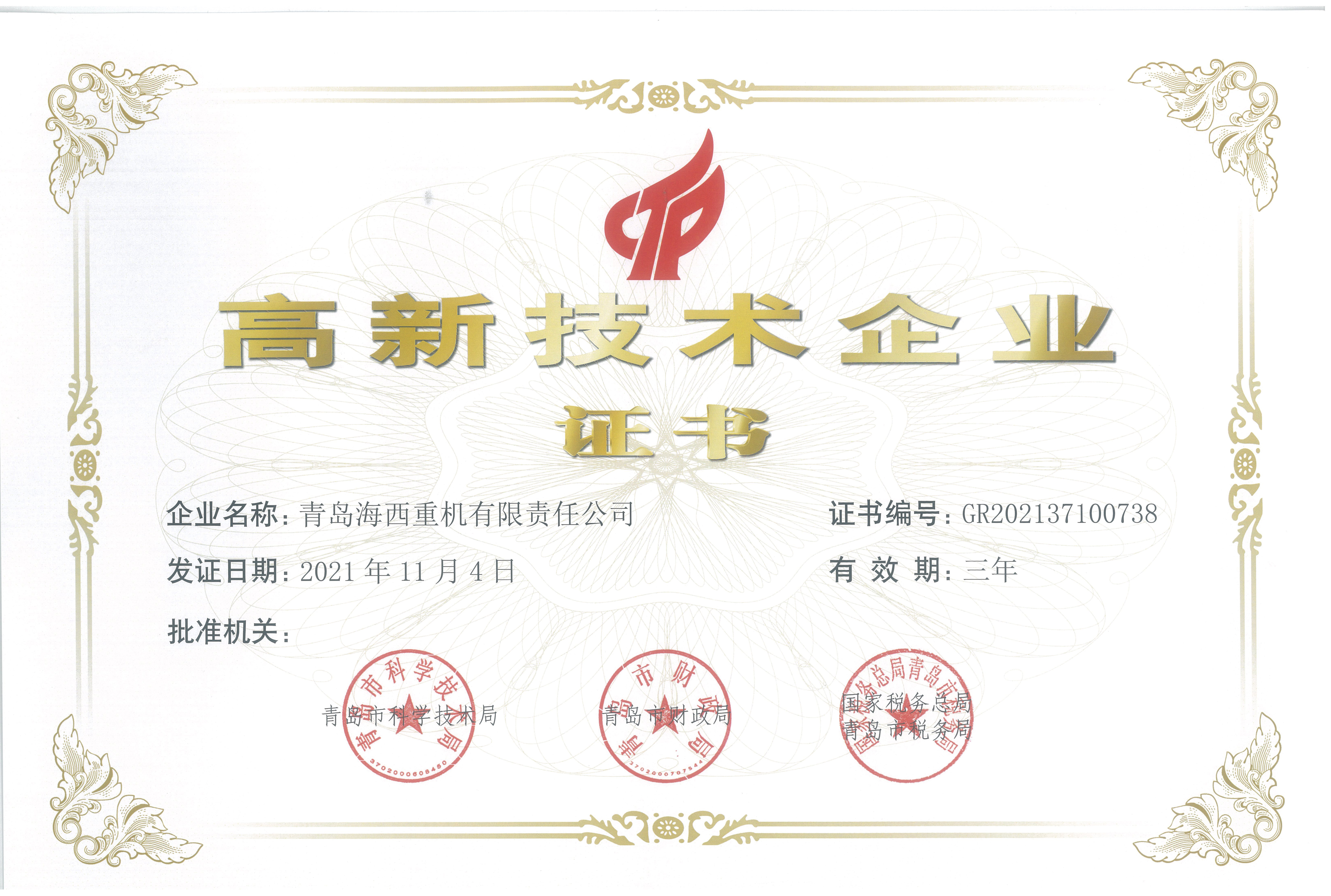 成功通過高新技術(shù)企業(yè)認(rèn)定,對(duì)于提高市場(chǎng)經(jīng)營競(jìng)爭(zhēng)力,提升企業(yè)品牌影響力具有重要作用,是公司實(shí)力和能力的體現(xiàn)。多年來,海西重機(jī)一直堅(jiān)持突出技術(shù)引領(lǐng)戰(zhàn)略,強(qiáng)化技術(shù)創(chuàng)新,以技術(shù)創(chuàng)新帶動(dòng)高質(zhì)量發(fā)展為重點(diǎn),取得了較好成績。公司獲得了山東省首臺(tái)套技術(shù)裝備3項(xiàng)、山東精品裝備產(chǎn)品2項(xiàng)、山東創(chuàng)新工業(yè)產(chǎn)品1項(xiàng)、集團(tuán)公司科技獎(jiǎng)勵(lì)6項(xiàng),青島市科技獎(jiǎng)1項(xiàng),科技成果鑒定11項(xiàng),西海岸區(qū)級(jí)人才2人……