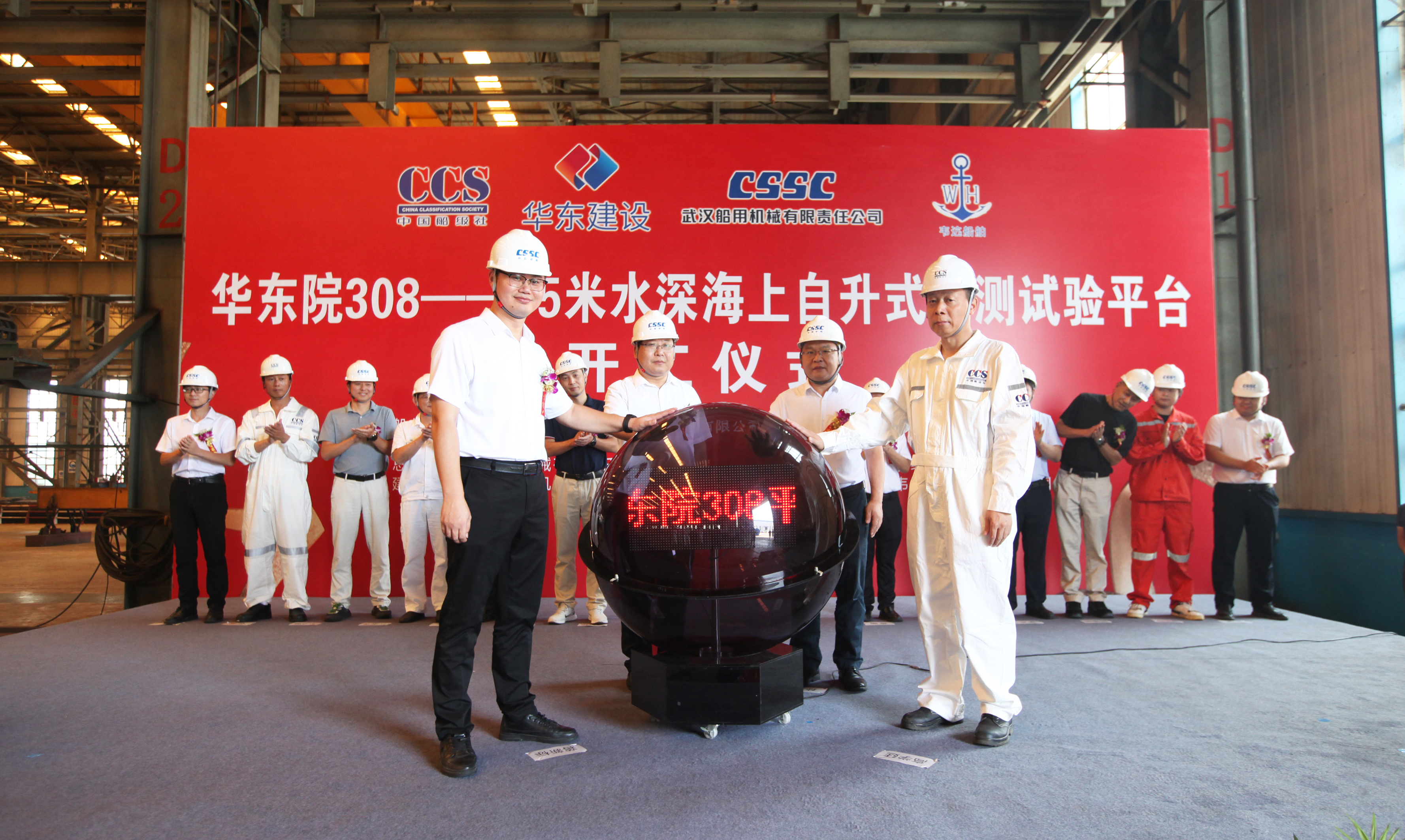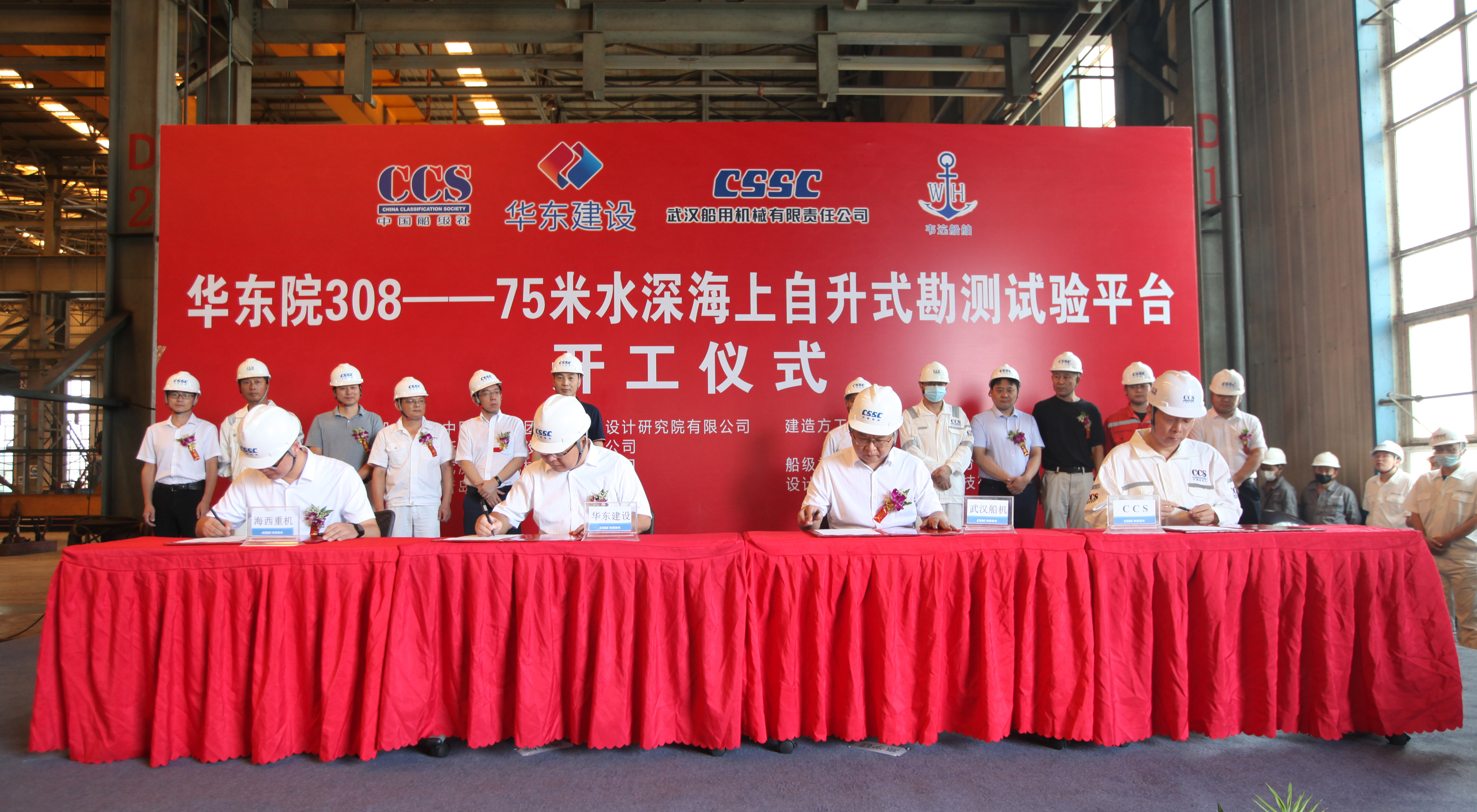 8月26日,中國(guó)船舶集團(tuán)旗下武漢船機(jī)海西重機(jī)公司承建的華東院308——75米水深海上自升式勘測(cè)試驗(yàn)平臺(tái)順利開(kāi)工。浙江華東建設(shè)工程有限公司、中國(guó)船級(jí)社青島分社、杭州逸秀船舶技術(shù)服務(wù)有限公司、上海韋迒船舶科技有限公司、中國(guó)船舶工業(yè)貿(mào)易有限公司、武漢船用機(jī)械有限責(zé)任公司、青島海西重機(jī)有限責(zé)任公司代表出席儀式。