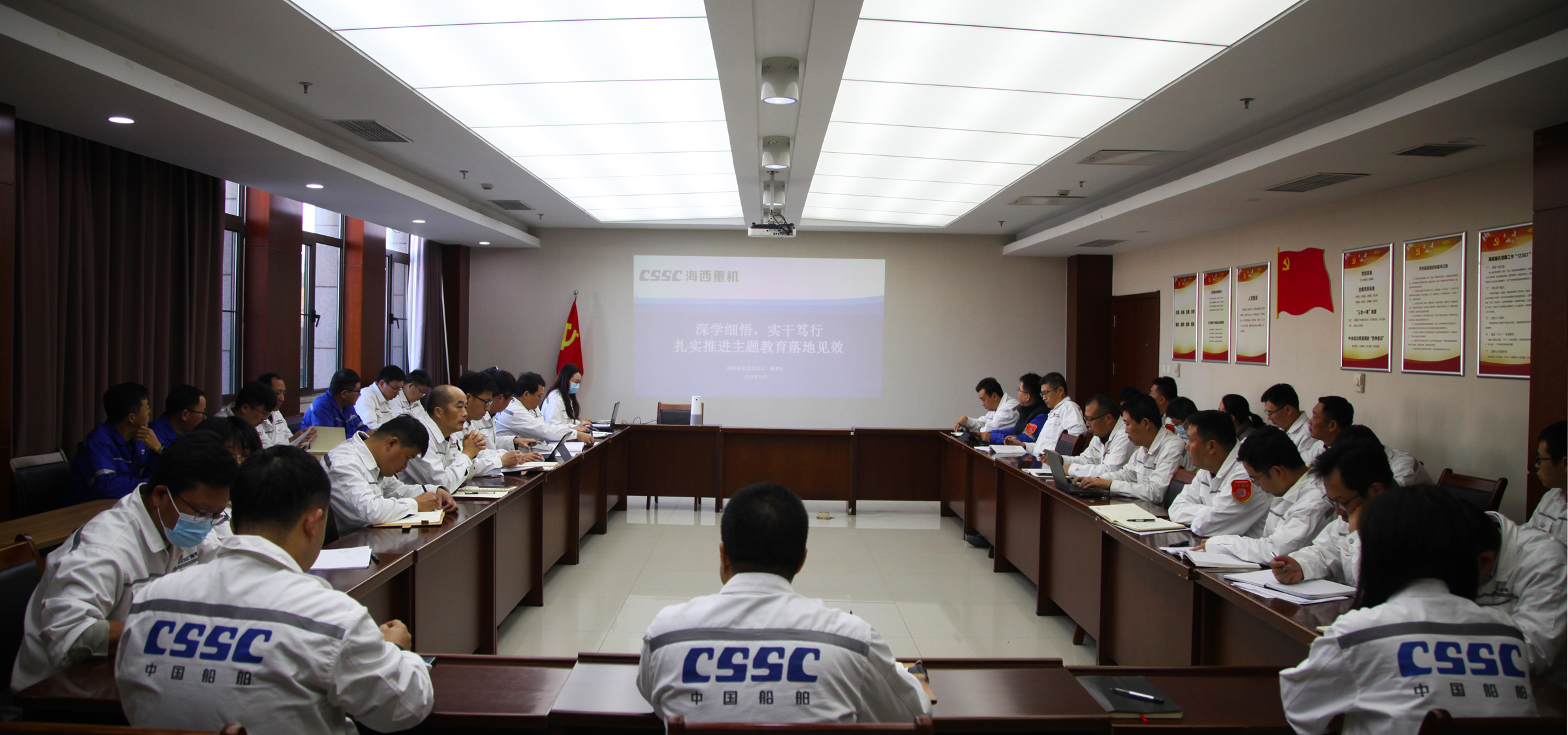 11月6日,中國船舶集團(tuán)旗下武漢船機(jī)海西重機(jī)公司黨委書記、董事長(zhǎng)李儒新為中層以上管理人員講授“深學(xué)細(xì)悟,實(shí)干篤行扎實(shí)推進(jìn)主題教育落地見效”主題教育專題黨課。