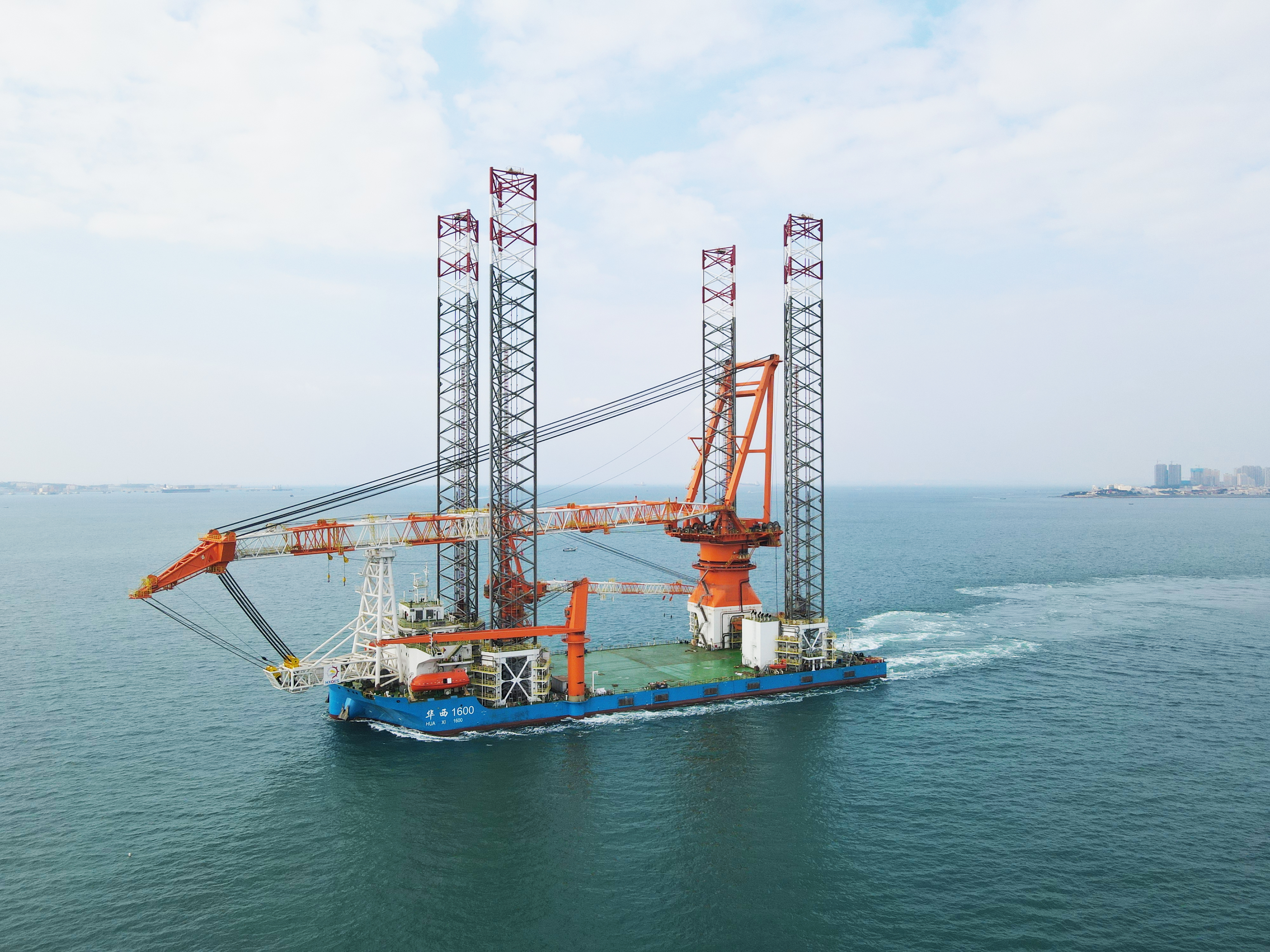 華西海工1600T風(fēng)電安裝平臺項目是武漢船機(jī)建造的最新一代風(fēng)電安裝平臺,最大作業(yè)水深70米,主吊機(jī)起重能力1600噸,甲板作業(yè)面積相當(dāng)于11個籃球場,是目前國內(nèi)作業(yè)水深最大、海上施工能力最強、功能最全、效率最高的桁架式樁腿風(fēng)電安裝平臺。