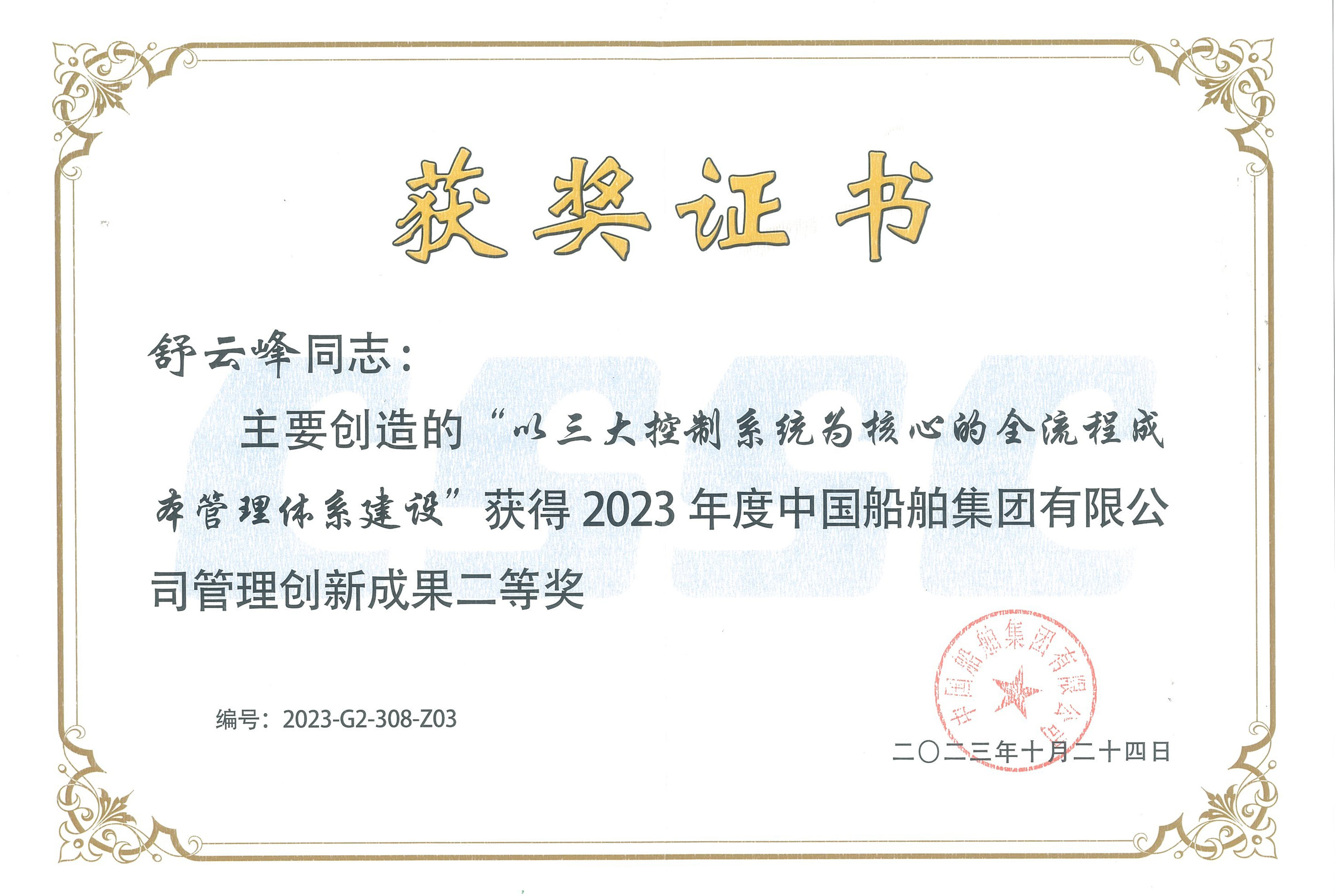 近日,集團公司傳來喜訊,海西重機“以三大控制系統(tǒng)為核心的全流程成本管理體系建設(shè)”管理創(chuàng)新成果榮獲中國船舶集團2023年度管理創(chuàng)新成果二等獎。