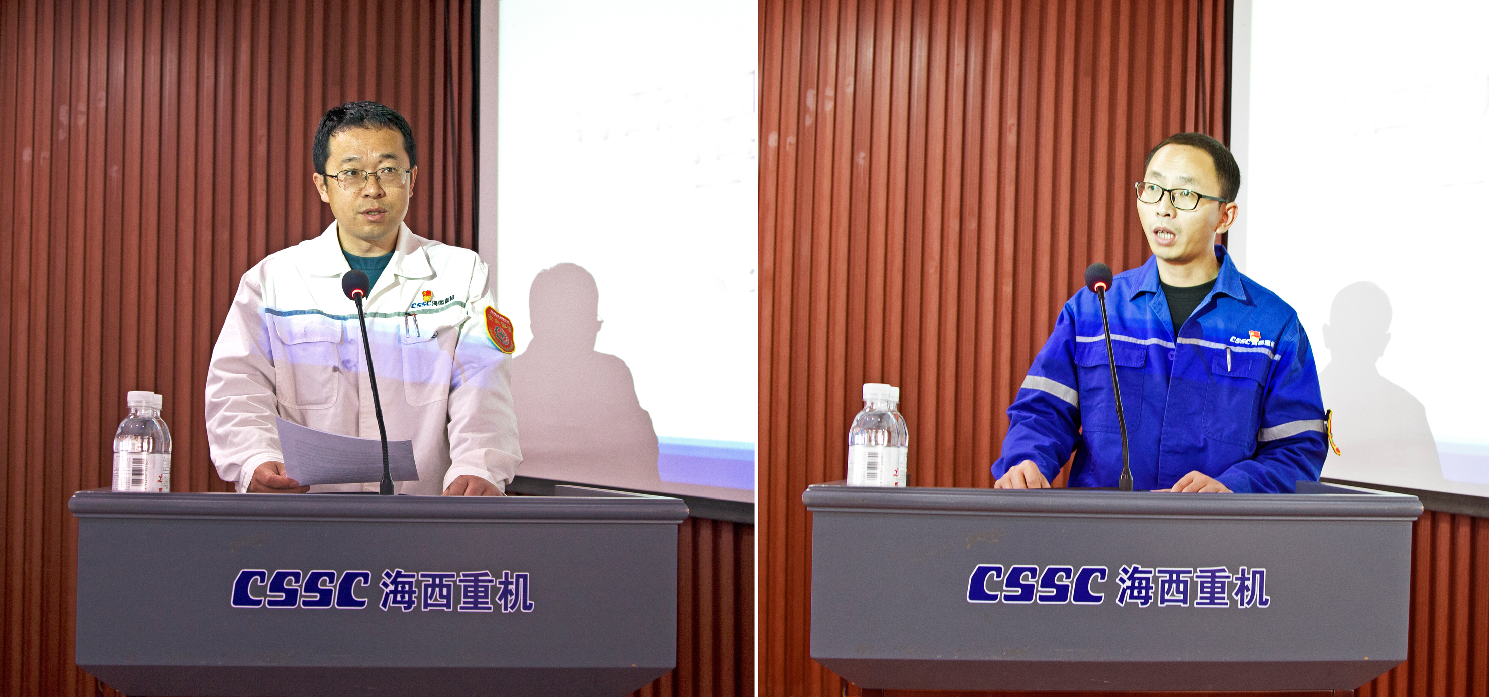 會(huì)上,海西重機(jī)海工部部長(zhǎng)商圣偉代表生產(chǎn)部門(mén)進(jìn)行發(fā)言,分享了去年海工項(xiàng)目做的好的工作經(jīng)驗(yàn),同時(shí)對(duì)今年安全生產(chǎn)工作進(jìn)行表態(tài),將帶領(lǐng)海工項(xiàng)目團(tuán)隊(duì)順利完成公司黨委交付的任務(wù),為公司高質(zhì)量發(fā)展交上一份滿意的答卷;項(xiàng)目管理部副部長(zhǎng)柯誠(chéng)同志分享了在濟(jì)寧港航龍拱港批量設(shè)備交機(jī)期間的工作體會(huì),從“品牌、執(zhí)行和學(xué)習(xí)”三個(gè)方面講述了龍拱港干部職工迎難而上、頑強(qiáng)拼博,埋頭苦干、善干巧干、敢于攻堅(jiān)克難的工作作風(fēng)。