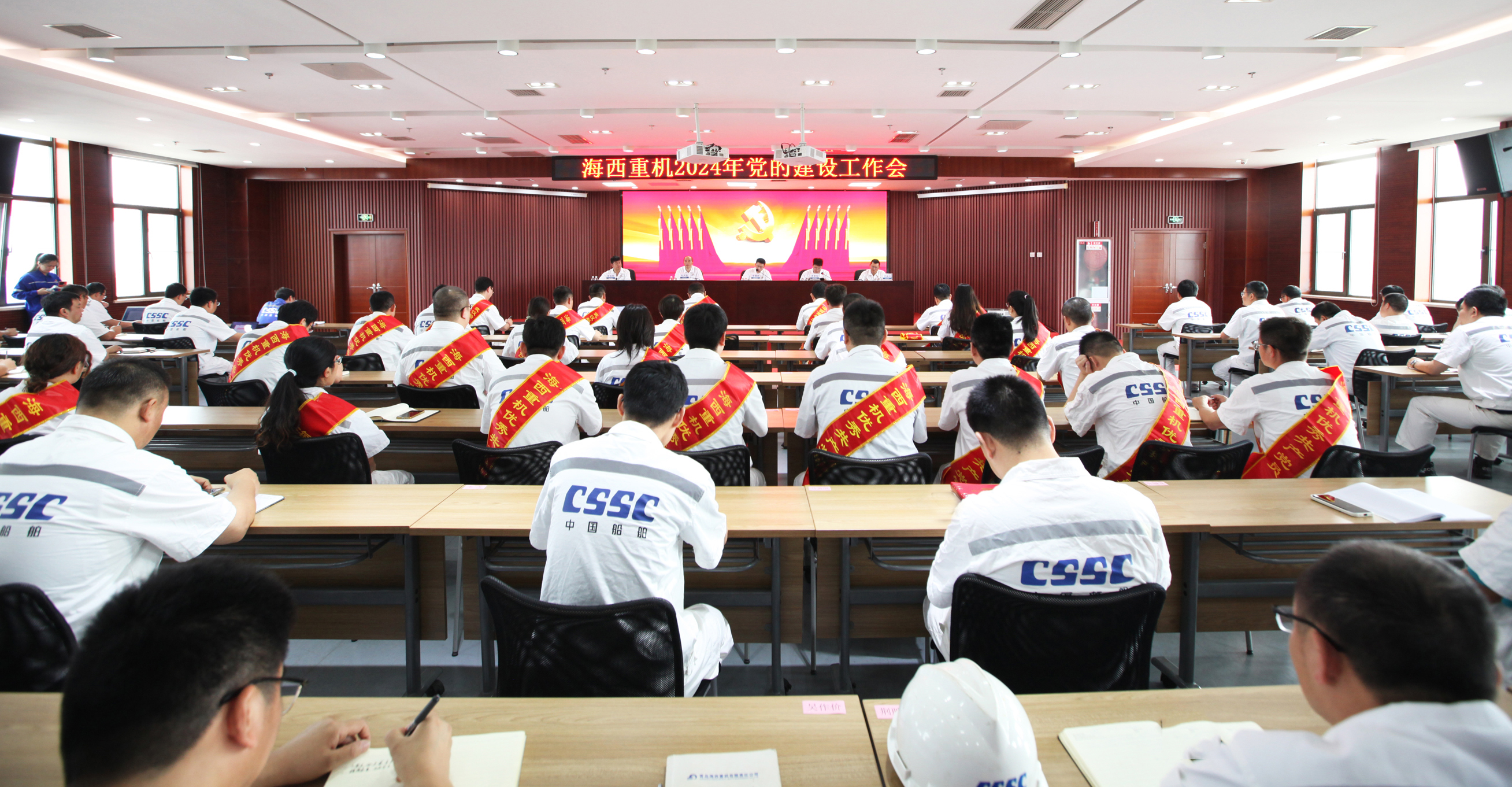 7月13日,中國船舶集團旗下武漢船機海西重機公司召開慶祝中國共產(chǎn)黨成立103周年暨2024年黨的建設(shè)工作會,全面總結(jié)一年來公司黨建的建設(shè)工作,分析形勢與任務(wù),部署下一階段公司黨的建設(shè)工作,表彰“兩優(yōu)一先”。海西重機中層及以上管理人員、專家、資深及以上工程師、中級及以上項目經(jīng)理、區(qū)域經(jīng)理、主管以及受表彰的先進個人參加會議,上海設(shè)計院以視頻的形式參加。