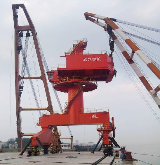 日前,裝載青島海西重機(jī)兩臺(tái)門(mén)座起重機(jī)的船舶靠泊武穴振航件雜貨碼頭,經(jīng)過(guò)現(xiàn)場(chǎng)工作人員的共同努力,兩臺(tái)門(mén)機(jī)順利吊裝完成,屹立于武穴振航碼頭上,成為長(zhǎng)江邊上一道亮麗的風(fēng)景線。