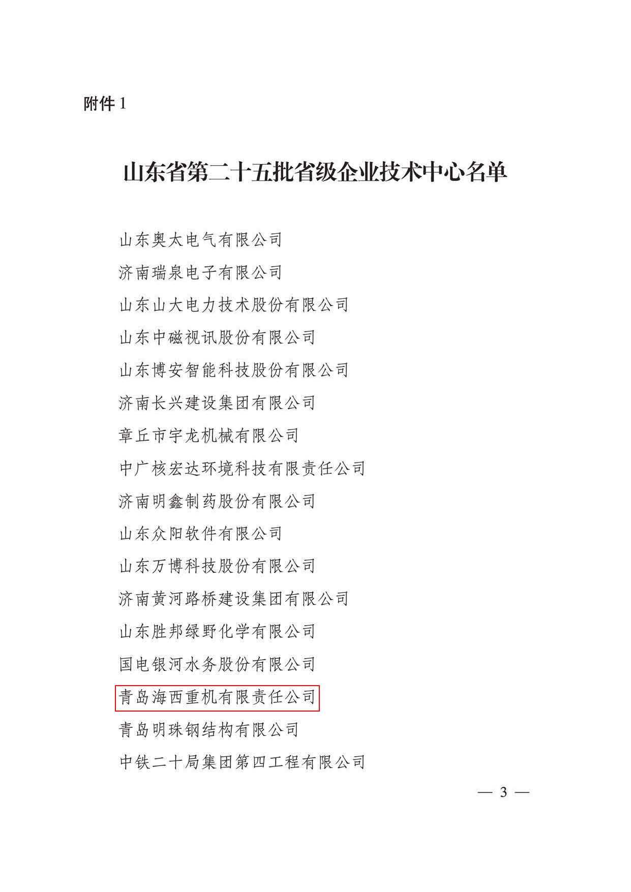 近日,山東省經(jīng)濟和信息委員會發(fā)布專項文件《關于公布山東省第二十五批省級企業(yè)技術(shù)中心及原有中心評價結(jié)果的通知》,海西重機憑借雄厚的技術(shù)實力和完備的技術(shù)創(chuàng)新硬件設備設施,順利通過認證,并且在西海岸新區(qū)第25批通過的四家省級企業(yè)技術(shù)中心中名列前茅。