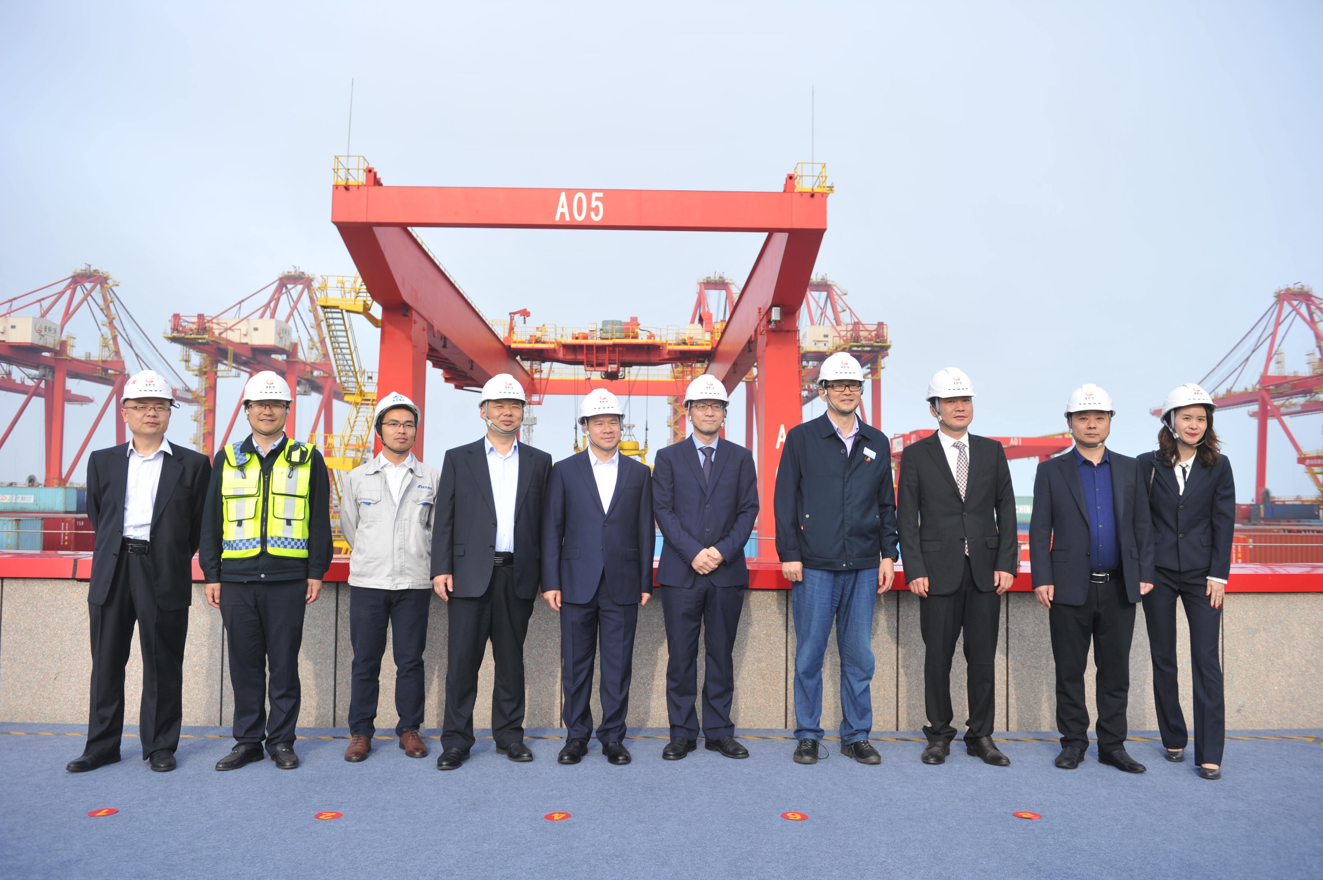 日照市科學(xué)技術(shù)局黨組書記、局長楊洪福,日照港集團公司副總經(jīng)理高健,青島海西重機有限責(zé)任公司黨委書記、董事長鄧振山,瑞典ABB港口業(yè)務(wù)部全球市場和業(yè)務(wù)發(fā)展經(jīng)理瑪麗特.妮斯特倫(Maarit Nystrom)出席并在集發(fā)公司自動化堆場遠控中心為竣工投產(chǎn)儀式共同按下啟動球。