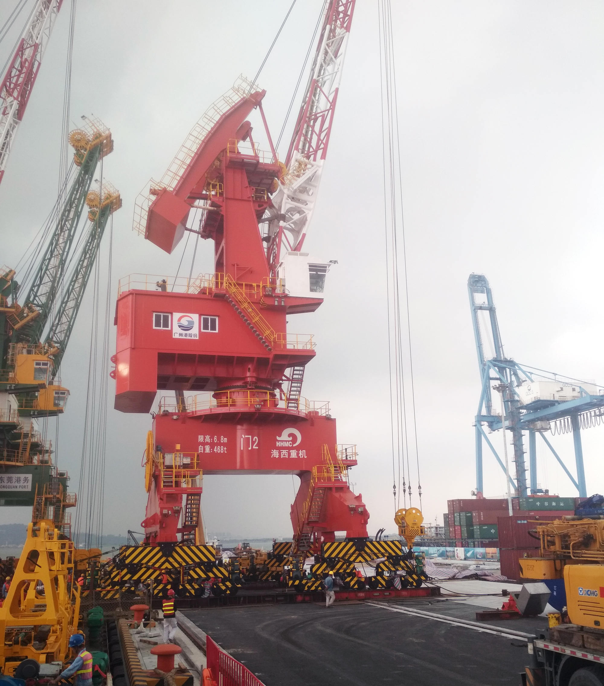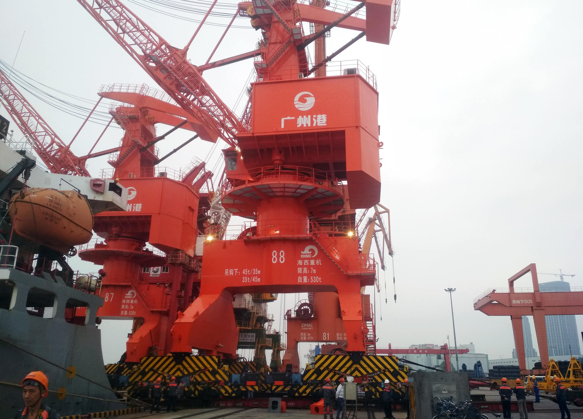 滿滿的一船門(mén)機(jī)。3月19日,我司分別為廣州港股份有限公司黃埔港務(wù)分公司、廣州港股份有限公司新沙港務(wù)有限公司、東莞市虎門(mén)港駁船碼頭有限公司制造的各2臺(tái)門(mén)機(jī)(共6臺(tái))在海西重機(jī)的生產(chǎn)碼頭同船順利發(fā)運(yùn)。3月26日,運(yùn)輸船安全抵達(dá)黃埔港,一場(chǎng)卸船攻堅(jiān)戰(zhàn)就此展開(kāi)。