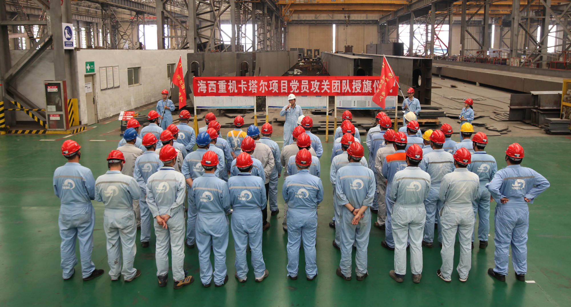 一場簡單的授旗儀式,卻是一次莊嚴的承諾,更是吹響了卡塔爾項目“進攻”的號角。海西重機在重點項目設(shè)立黨員攻關(guān)團隊,充分發(fā)黨員領(lǐng)導(dǎo)干部先進性,遇水塔橋,逢山開路,促進黨建工作與生產(chǎn)經(jīng)營工作深度融合。海西人堅定信心,不忘初心,牢記使命,擼起袖子加油干,交出一份滿意的答卷!