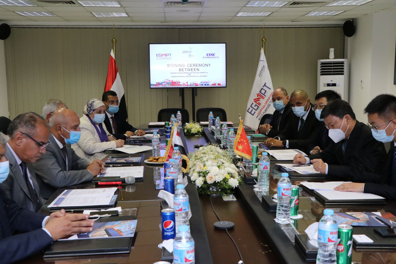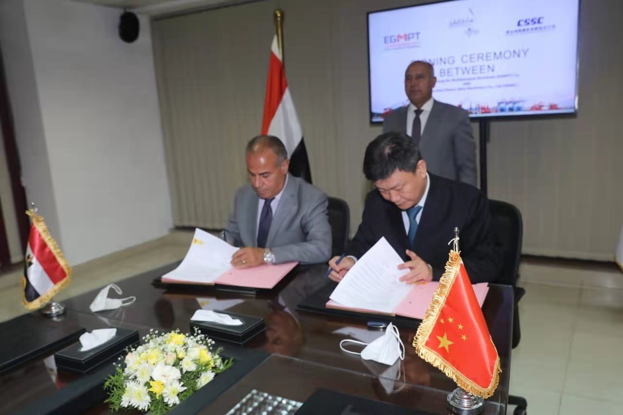 當(dāng)?shù)貢r間8月7日,中國船舶集團旗下武漢船機海西重機公司與埃及亞歷山大港多用途碼頭簽訂批量岸橋項目。埃及交通部部長Kamel Elwazir、多用途碼頭(EGMPT)主席Abdelkader Darwish、達飛集團駐埃及負責(zé)人Eng.Tariq Zaghloul及EGMPT技術(shù)團隊,海西重機黨委書記、董事長鄧振山等出席現(xiàn)場簽約儀式。