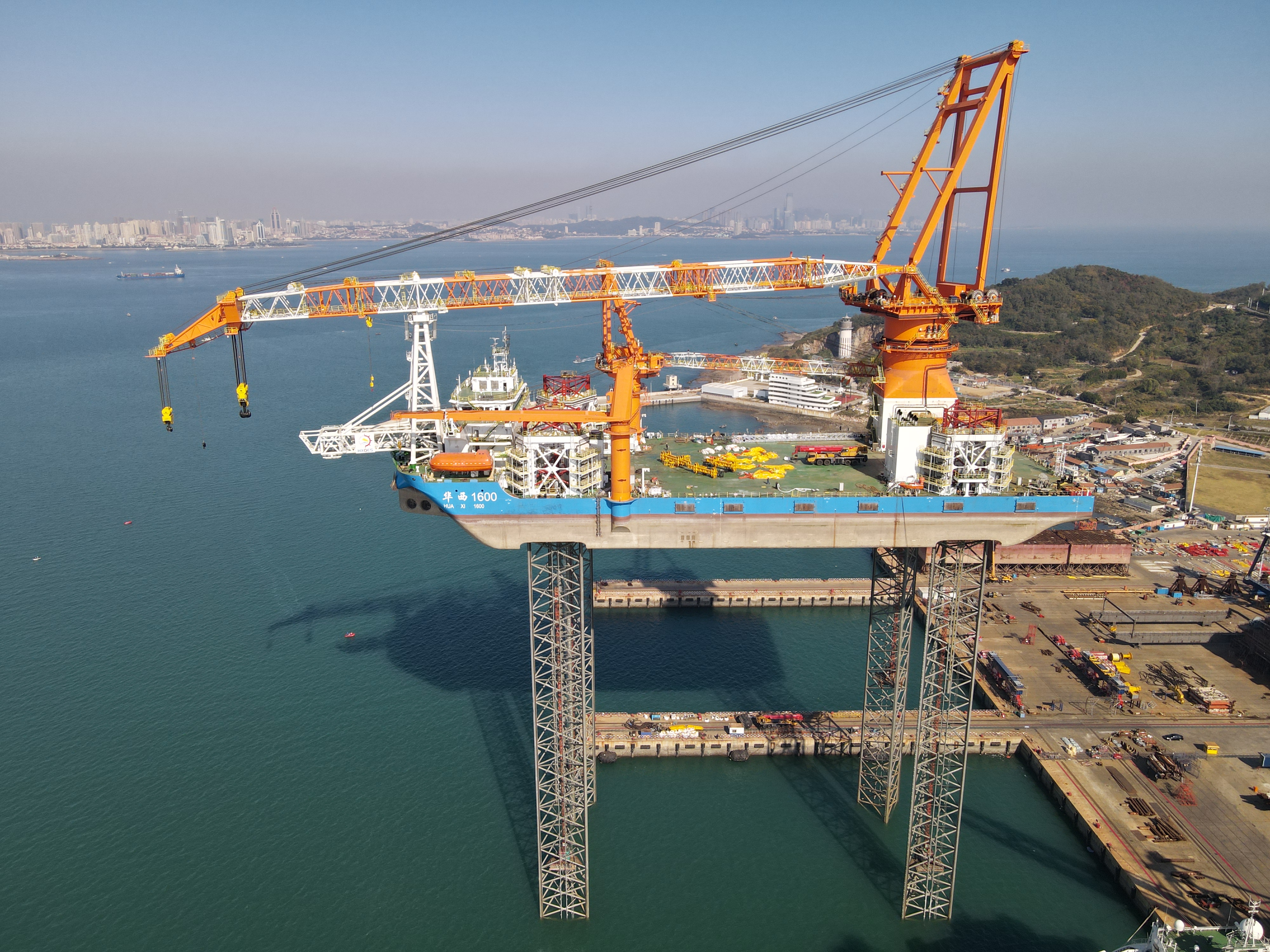 華西海工1600T風(fēng)電安裝平臺項目是武漢船機(jī)建造的最新一代風(fēng)電安裝平臺,最大作業(yè)水深70米,主吊機(jī)起重能力1600噸,甲板作業(yè)面積相當(dāng)于11個籃球場,是目前國內(nèi)作業(yè)水深最大、海上施工能力最強、功能最全、效率最高的桁架式樁腿風(fēng)電安裝平臺。