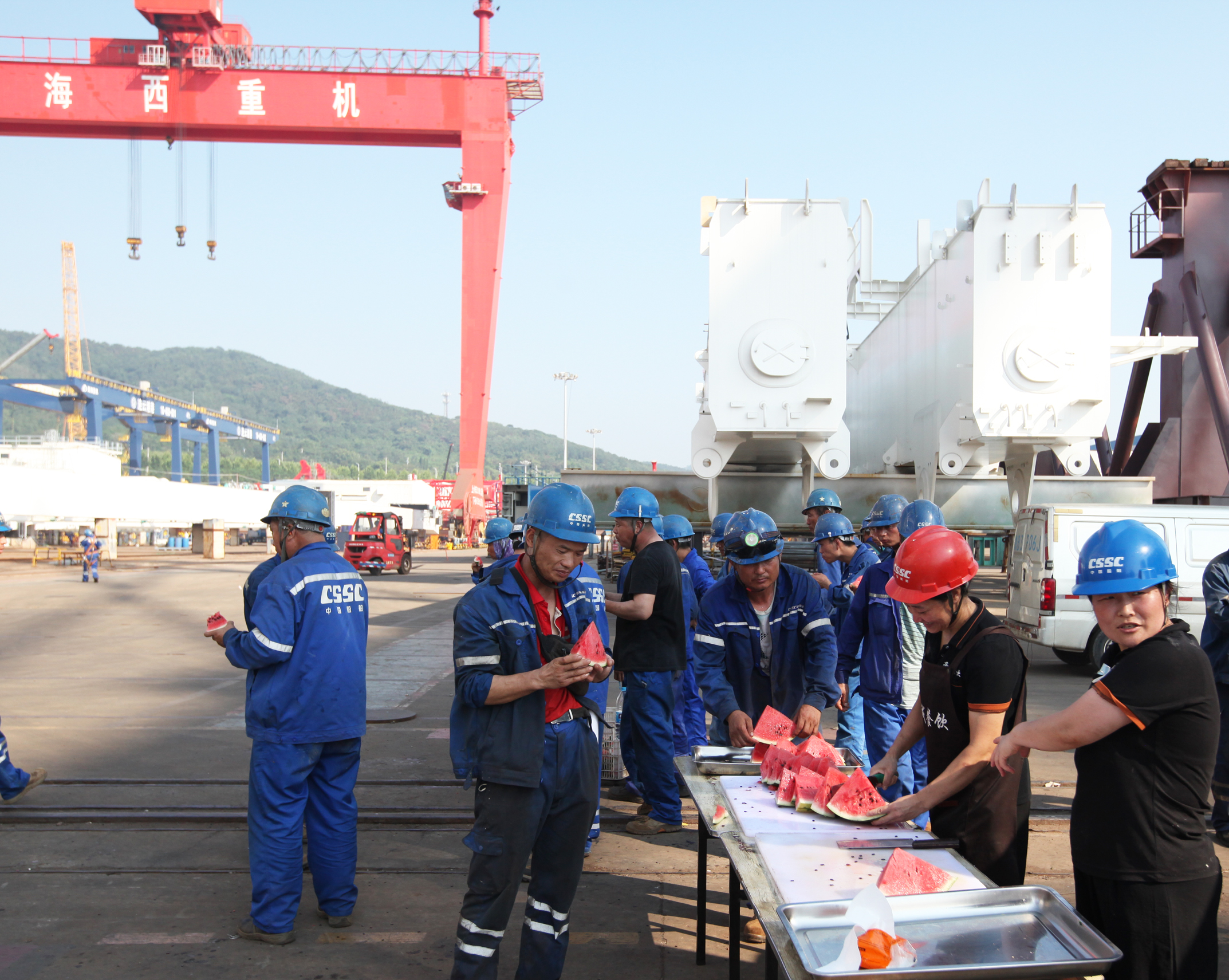 日盛三伏,酷暑炎炎。然而酷暑并不能阻擋住員工們大干快干的高漲熱情,各個(gè)生產(chǎn)項(xiàng)目都在緊鑼密鼓、熱火朝天地推進(jìn)著。為充分保障一線員工的生產(chǎn)安全和身心健康,中國(guó)船舶集團(tuán)旗下武漢船機(jī)海西重機(jī)公司于近日組織開(kāi)展了“戰(zhàn)高溫沖節(jié)點(diǎn) 關(guān)愛(ài)一線員工”2024年夏季“送清涼”活動(dòng)。