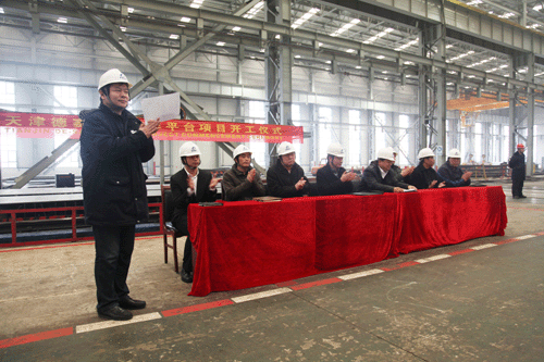在開工點(diǎn)火儀式上,船東德賽公司和美國ABS船級(jí)社都充分肯定了公司在開工前的準(zhǔn)備工作,對(duì)公司的施工組織設(shè)計(jì)、項(xiàng)目人員配備、焊接工藝評(píng)定等等工作都非常滿意。公司副總孫國慶在點(diǎn)火儀式上承諾:在船東代表的指導(dǎo)下,在美國ABS船級(jí)社的監(jiān)造下,公司一定秉承“你(德賽公司)給我機(jī)會(huì),我給你喜悅”,建造一個(gè)一流的海工平臺(tái)交付船東,讓大家都喜悅!